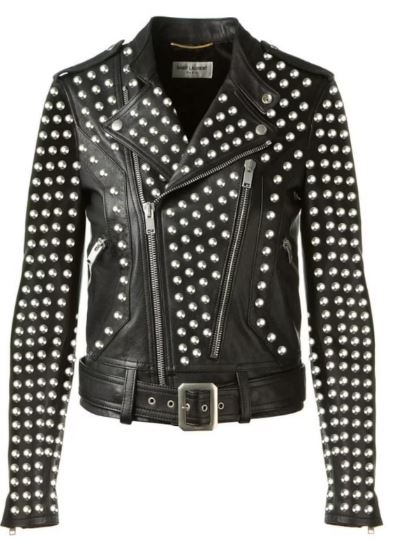 Customize Women Studs Genuine Leather Lapel Collar Belted Jacket