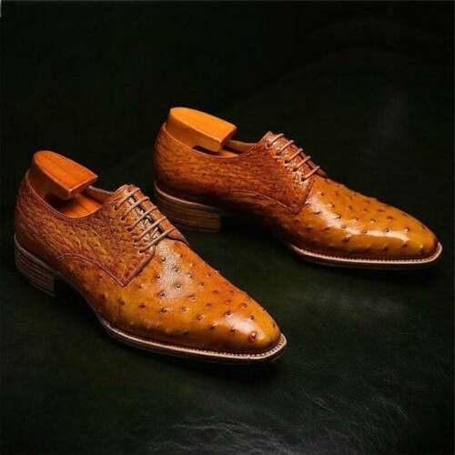 Handmade Men's Tan Ostrich Skin Leather Formal Dress Shoes