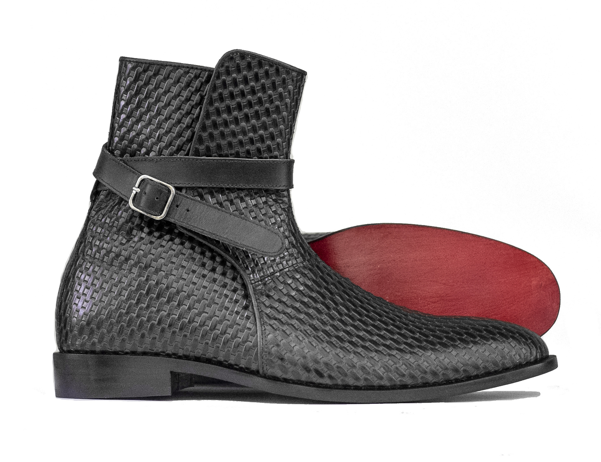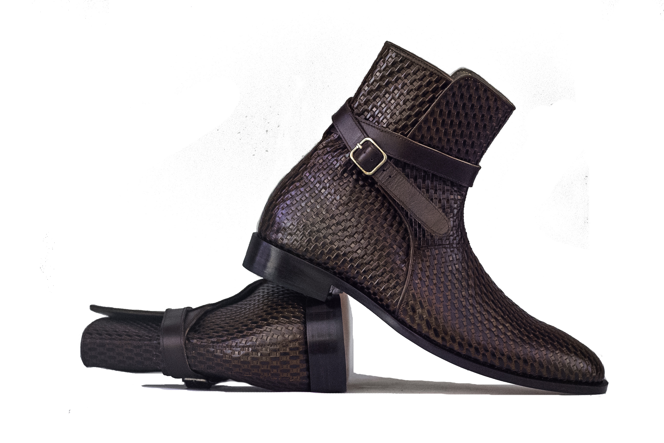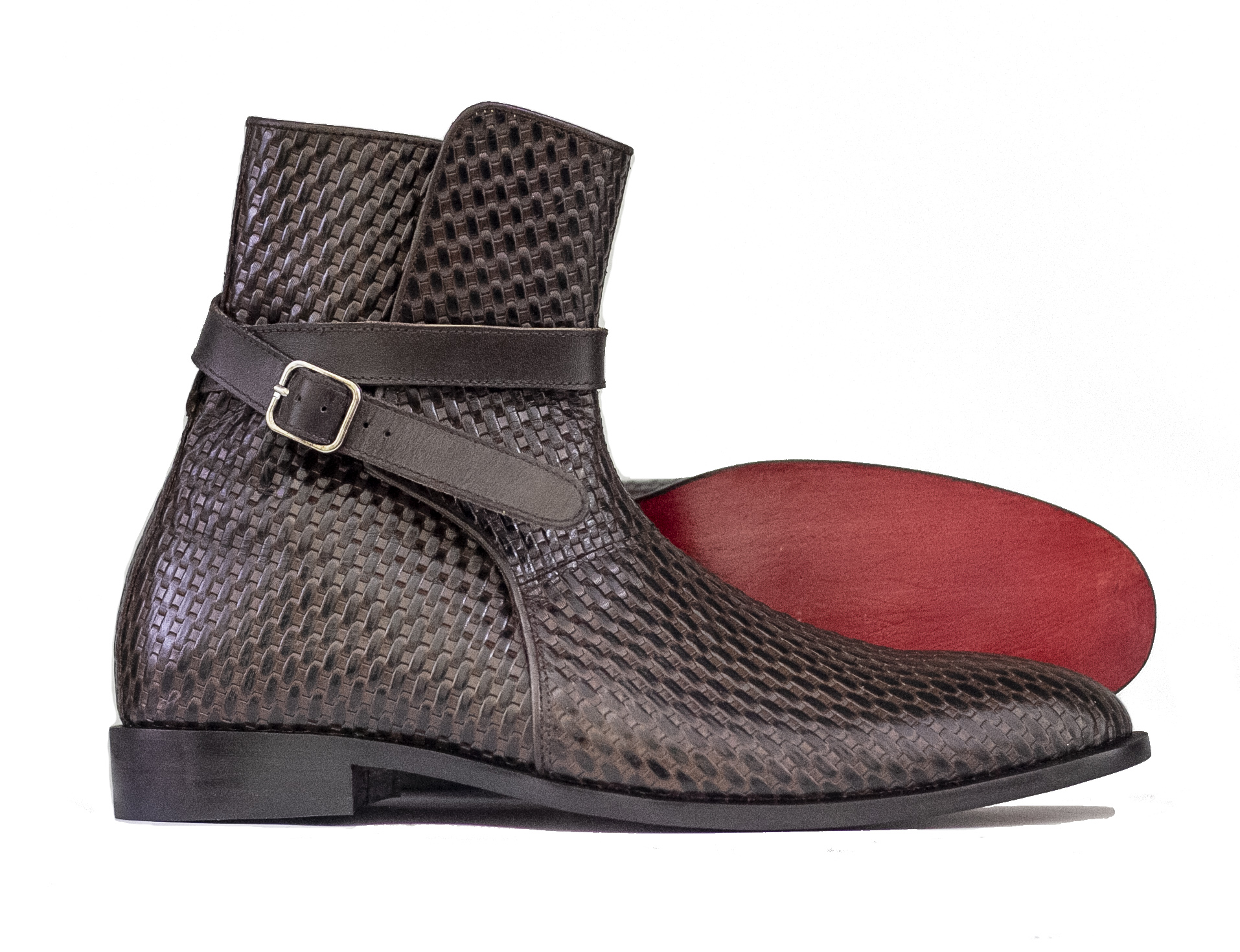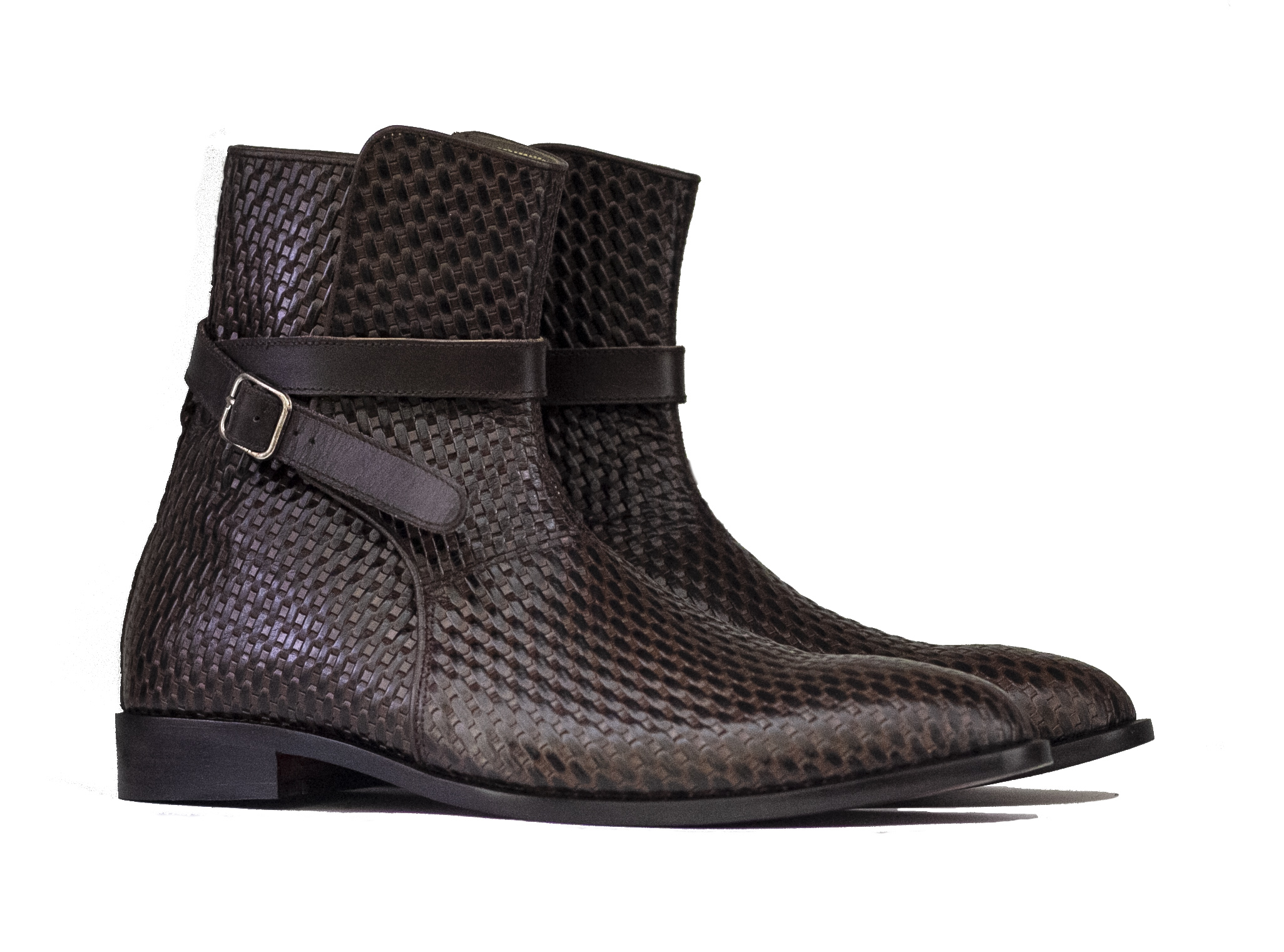 Handmade Ankle High Woven Texture Leather Boot, Men's Jodhpurs Braided Style Leather Boot