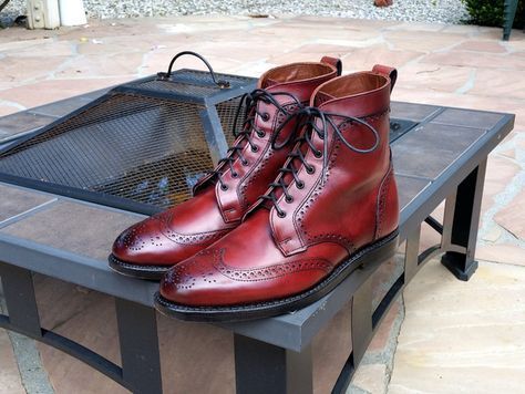 Handmade Burgundy Wing Tip Brogue Leather Boot