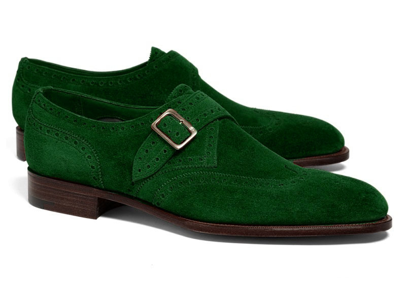 Handmade Monk Strap Leather Suede Brogue Shoes For Men