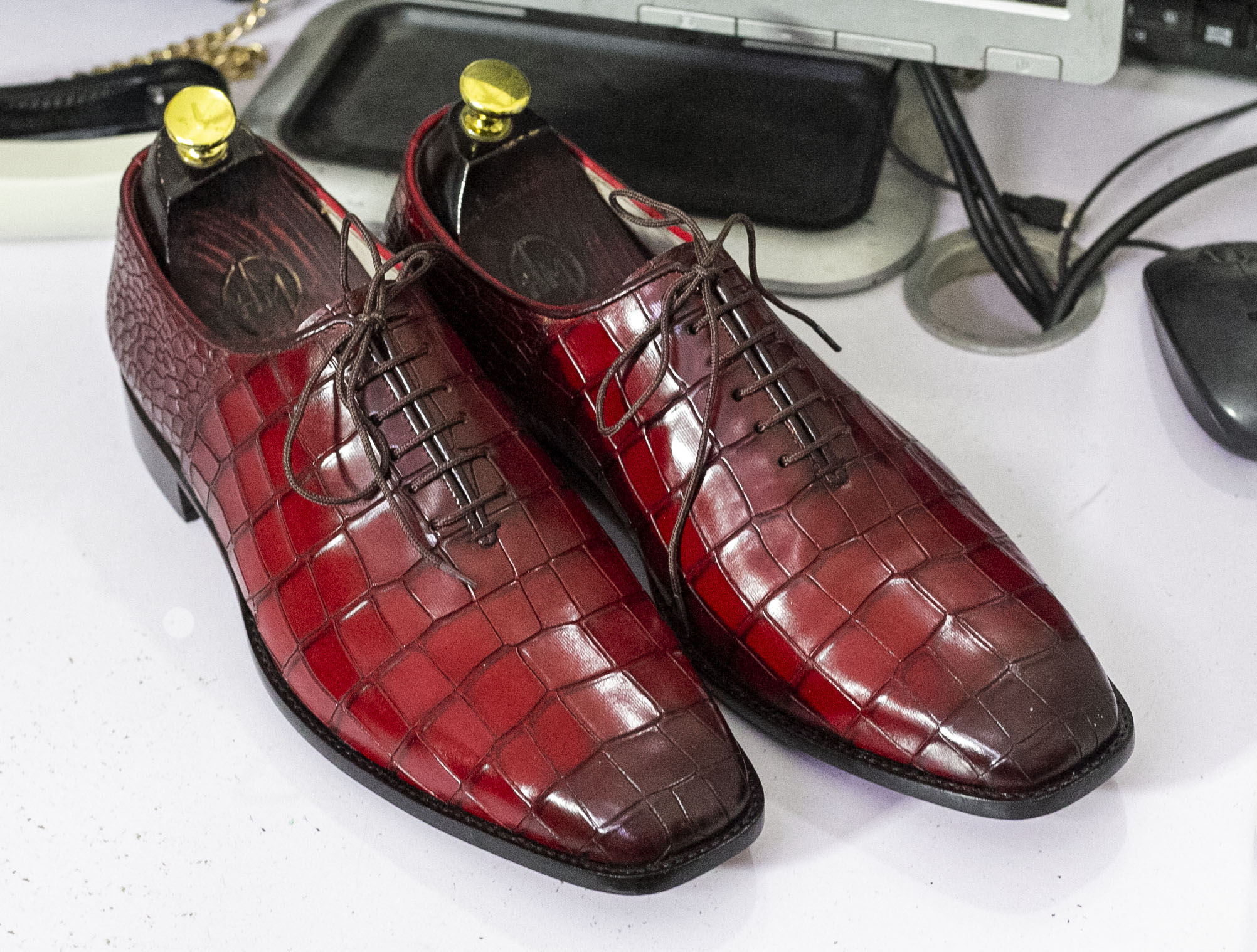 Handmade Alligator Skin Texture Leather Dress Shoes For Men