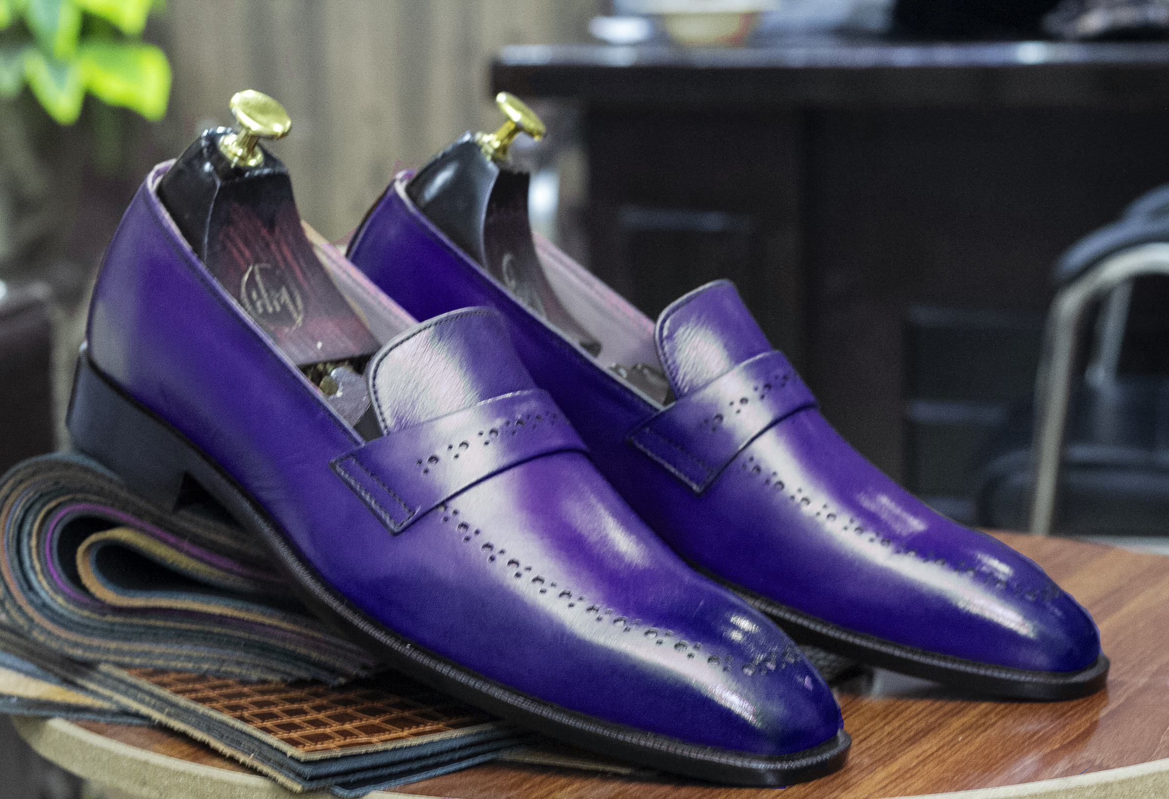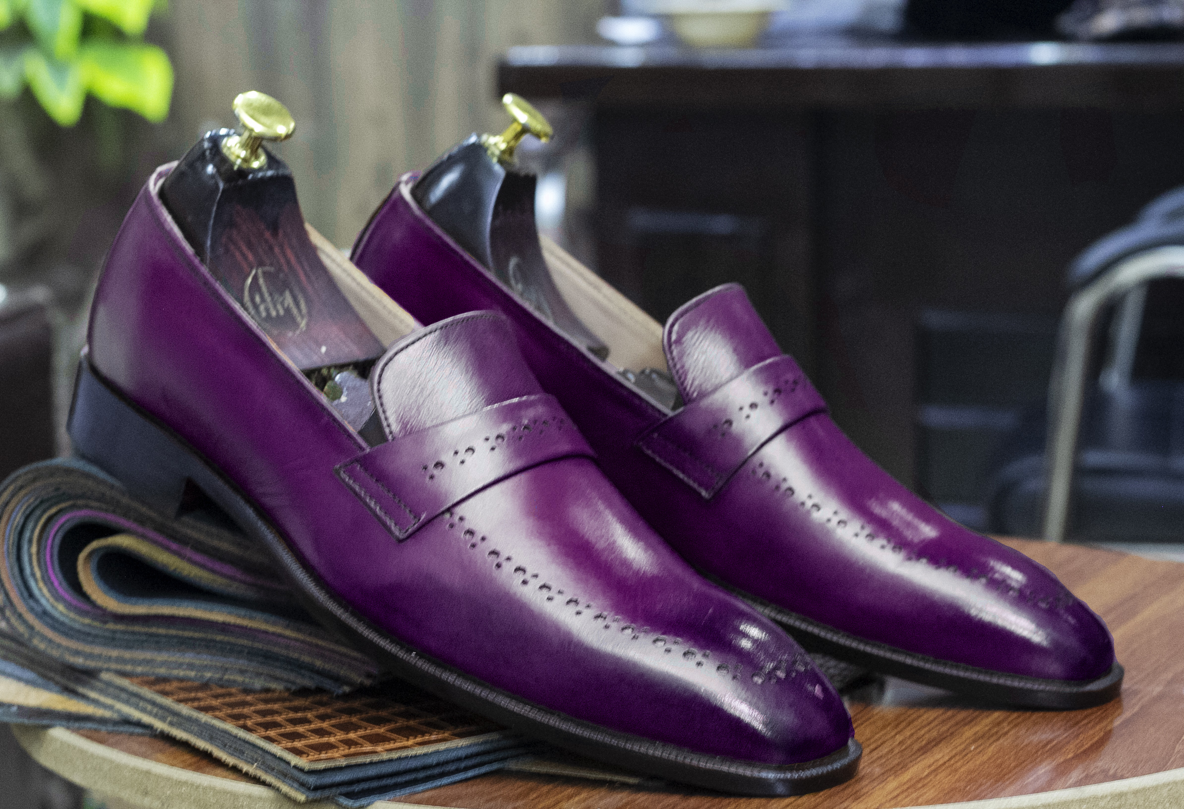 Handmade Men's Oxford Penny Loafers Shoes, Slip On Leather Loafers