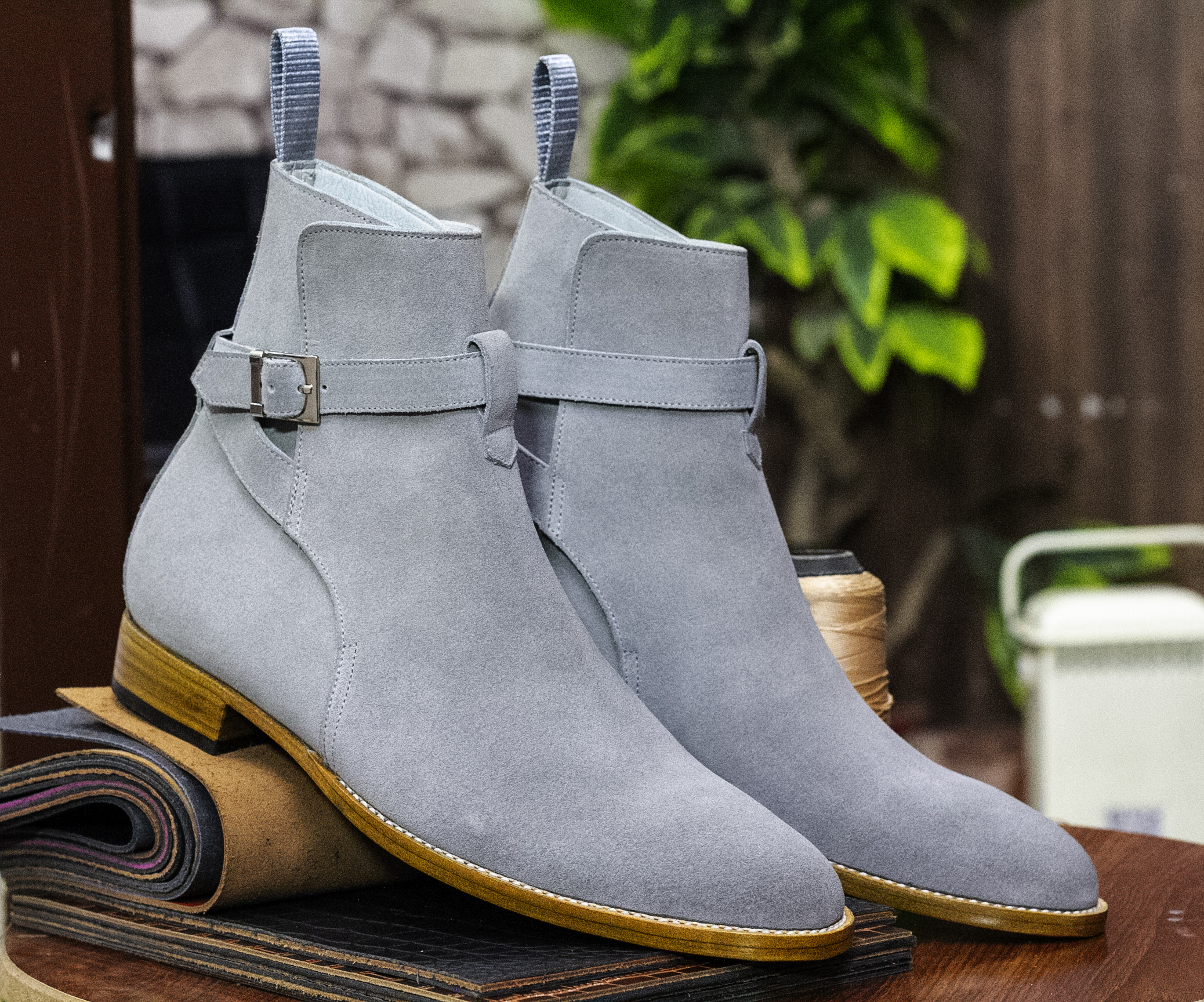 Handmade Men's Grey Leather Suede Jodhpurs Boot