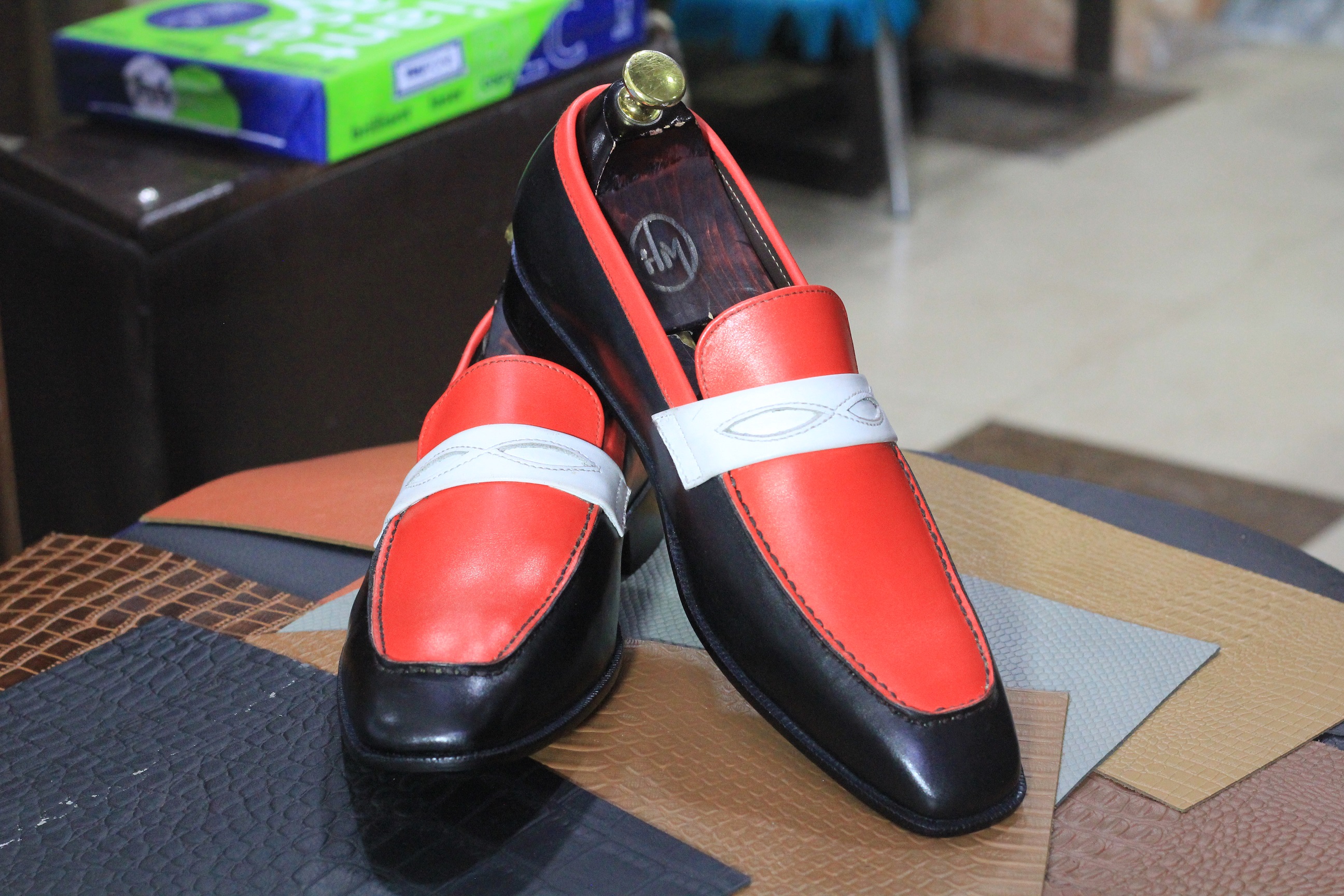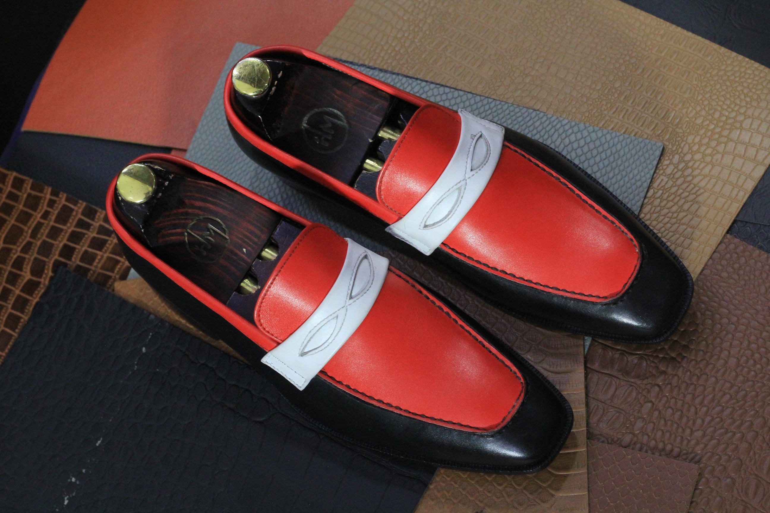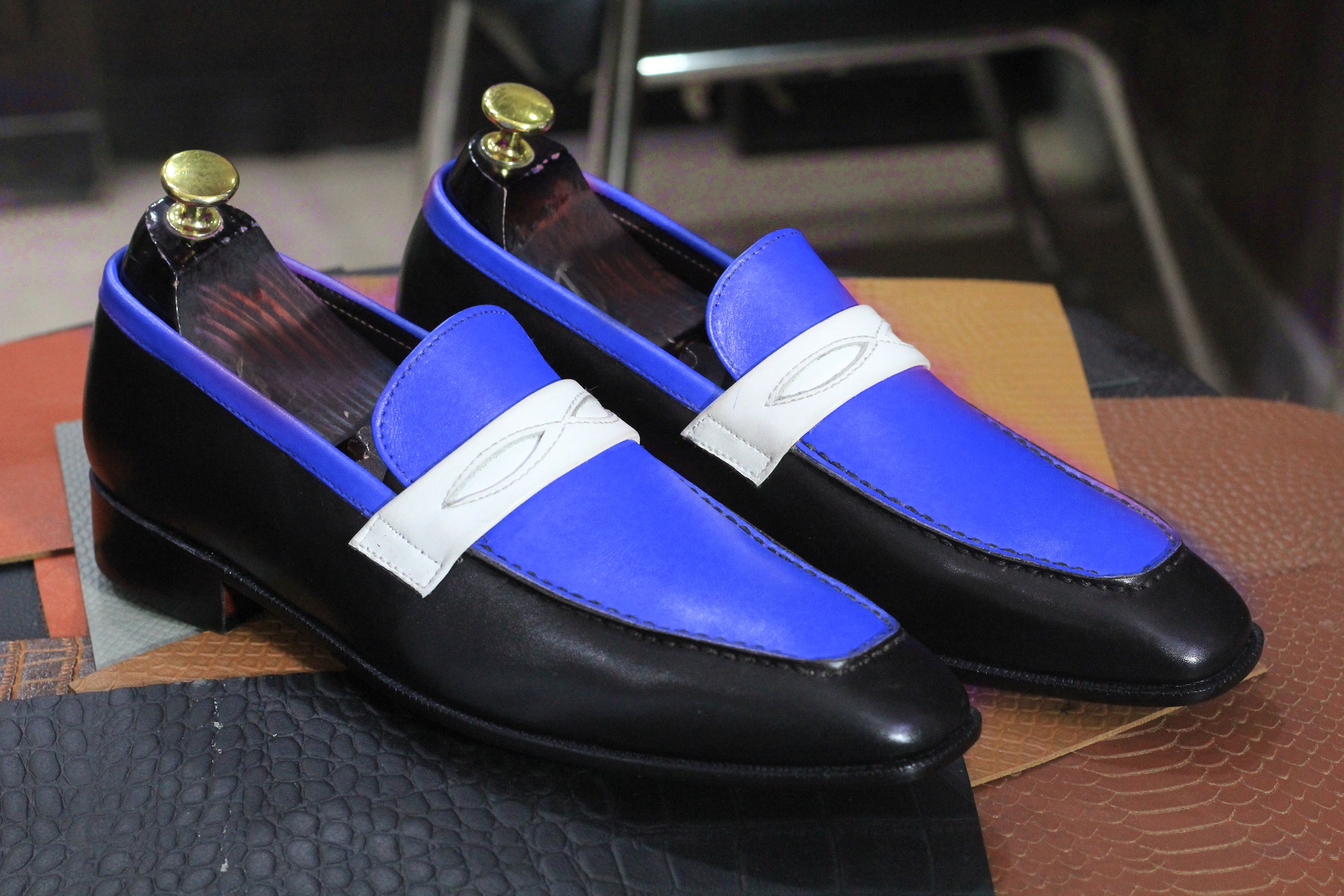 Men's Three Tone Slip On Handmade Leather Moccasin Loafers