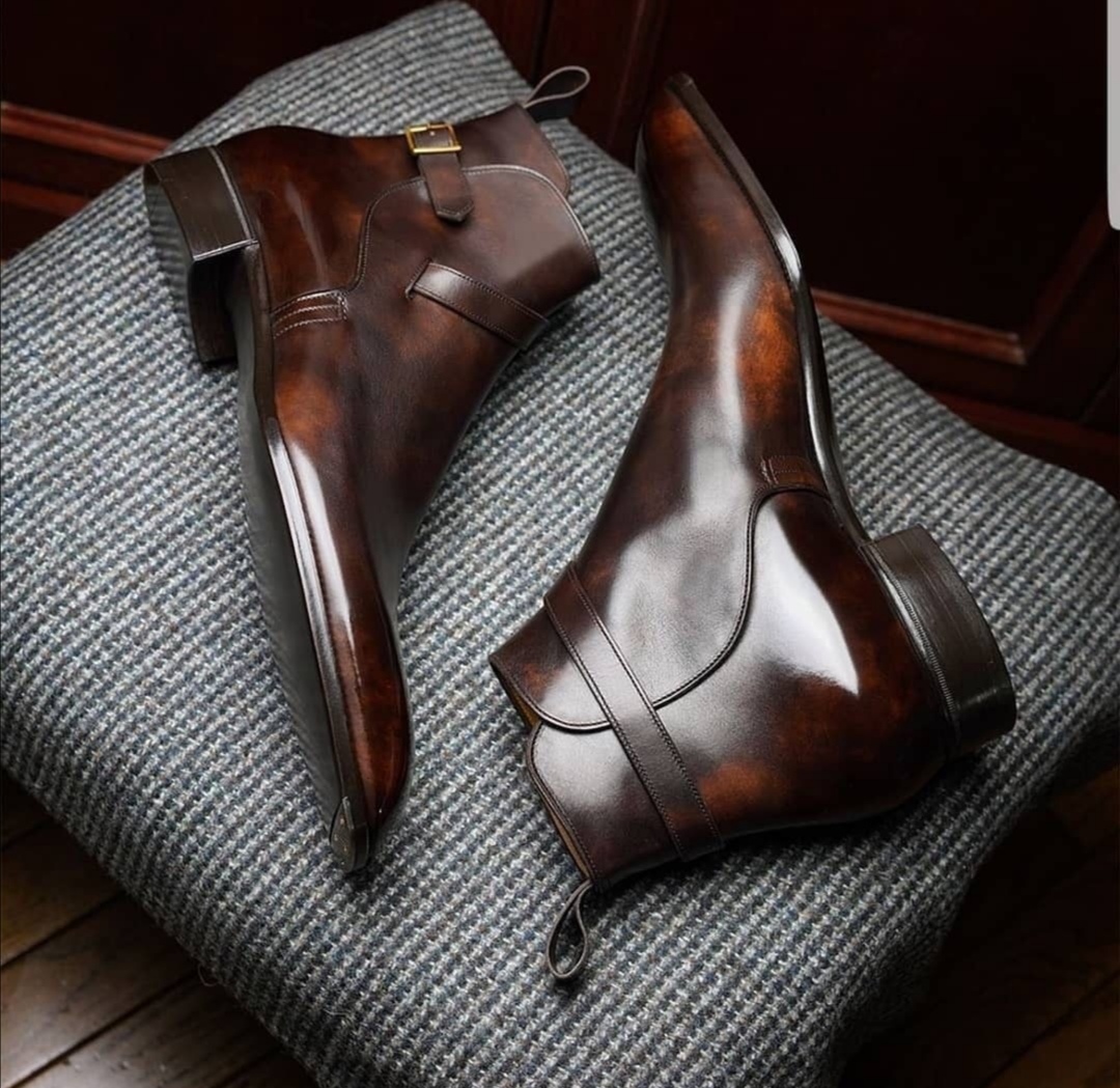 Men's Handmade Brown Patent Leather Half Ankle Jodhpurs Boot For Men