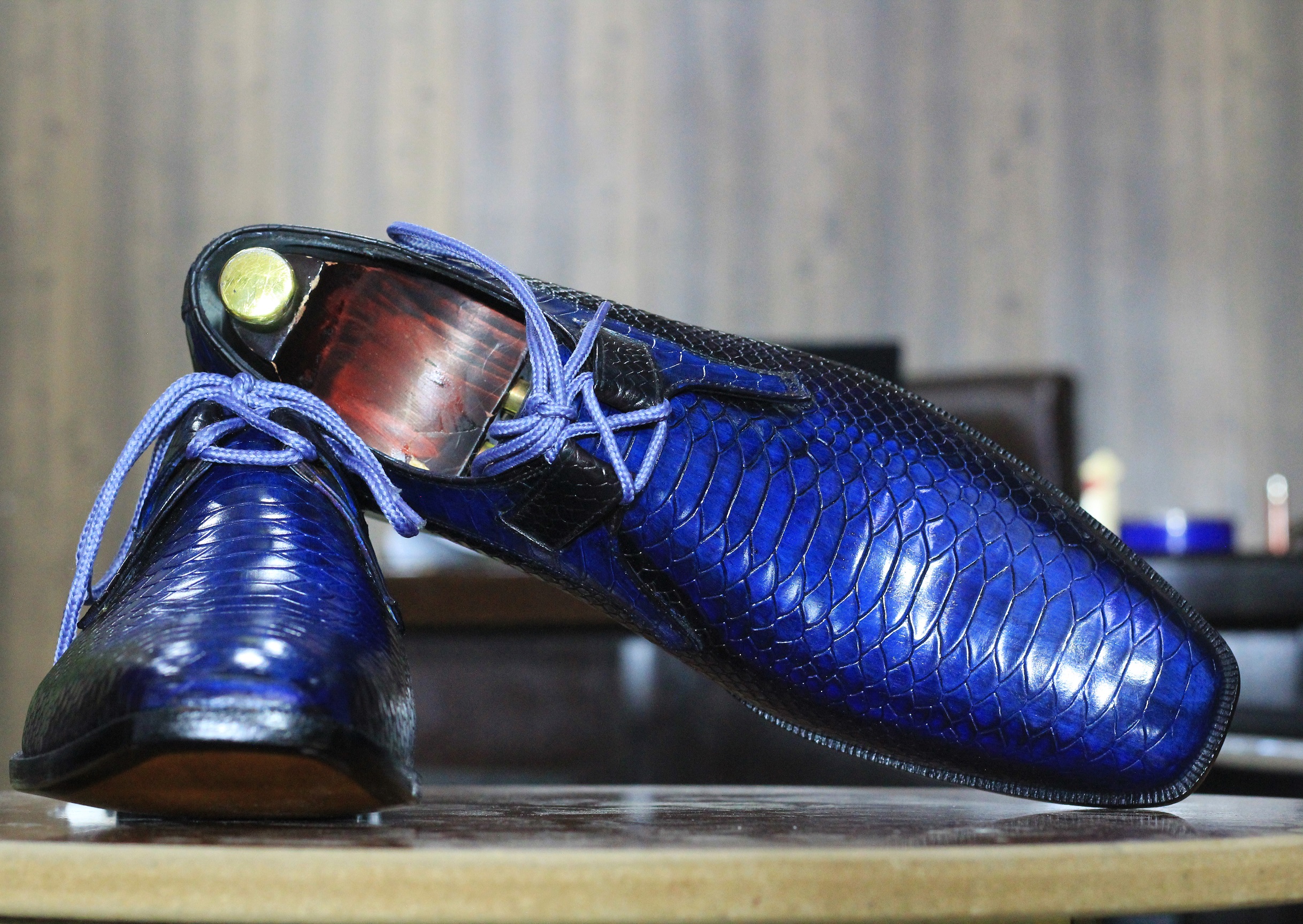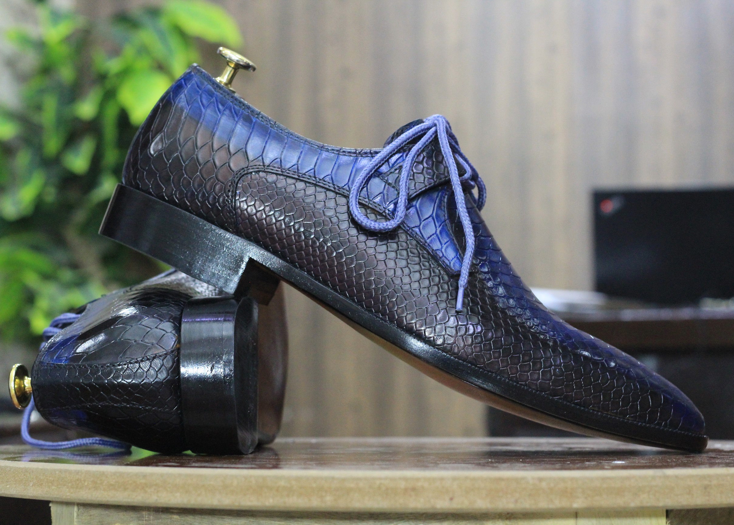 New Hand Painted Blue & Black Python Leather Shoes, Men's Stylish Shoes