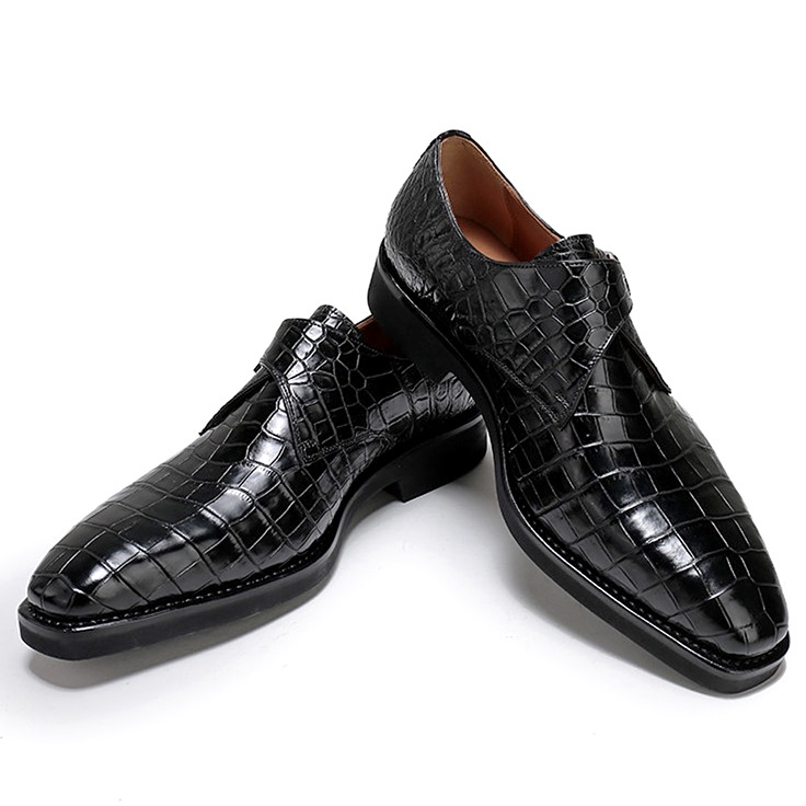 Handmade Pure Black Alligator Buckle New Classic Shoes For Men's
