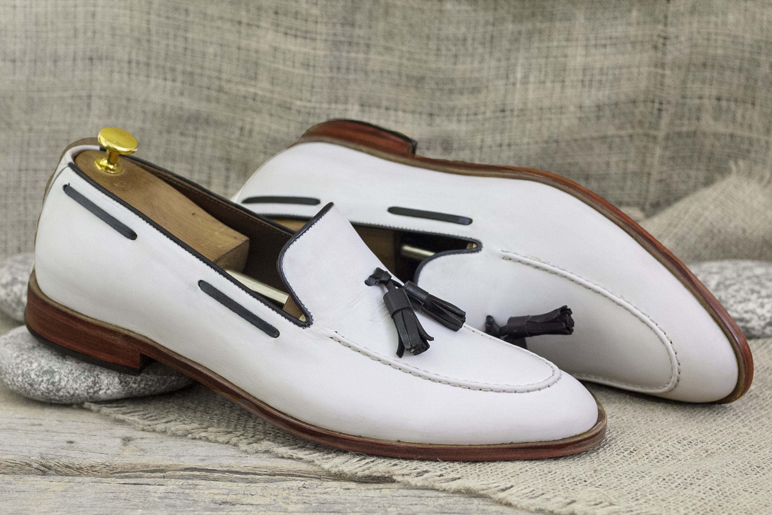 Handmade White Slip On Loafer Tussle Shoes, Men's Party Wear Shoes, Classic Shoes