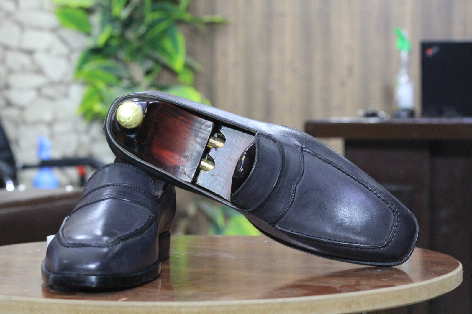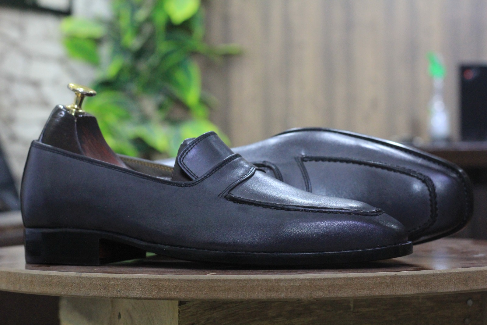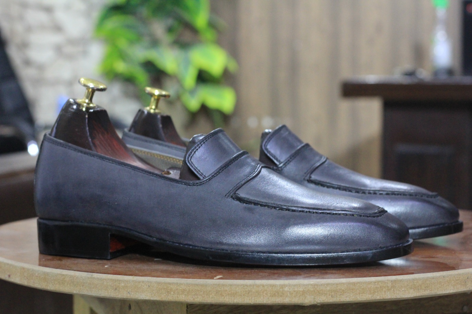Handmade Men's Pure Grey Leather Shoes, Slip On Loafer Leather Shoes