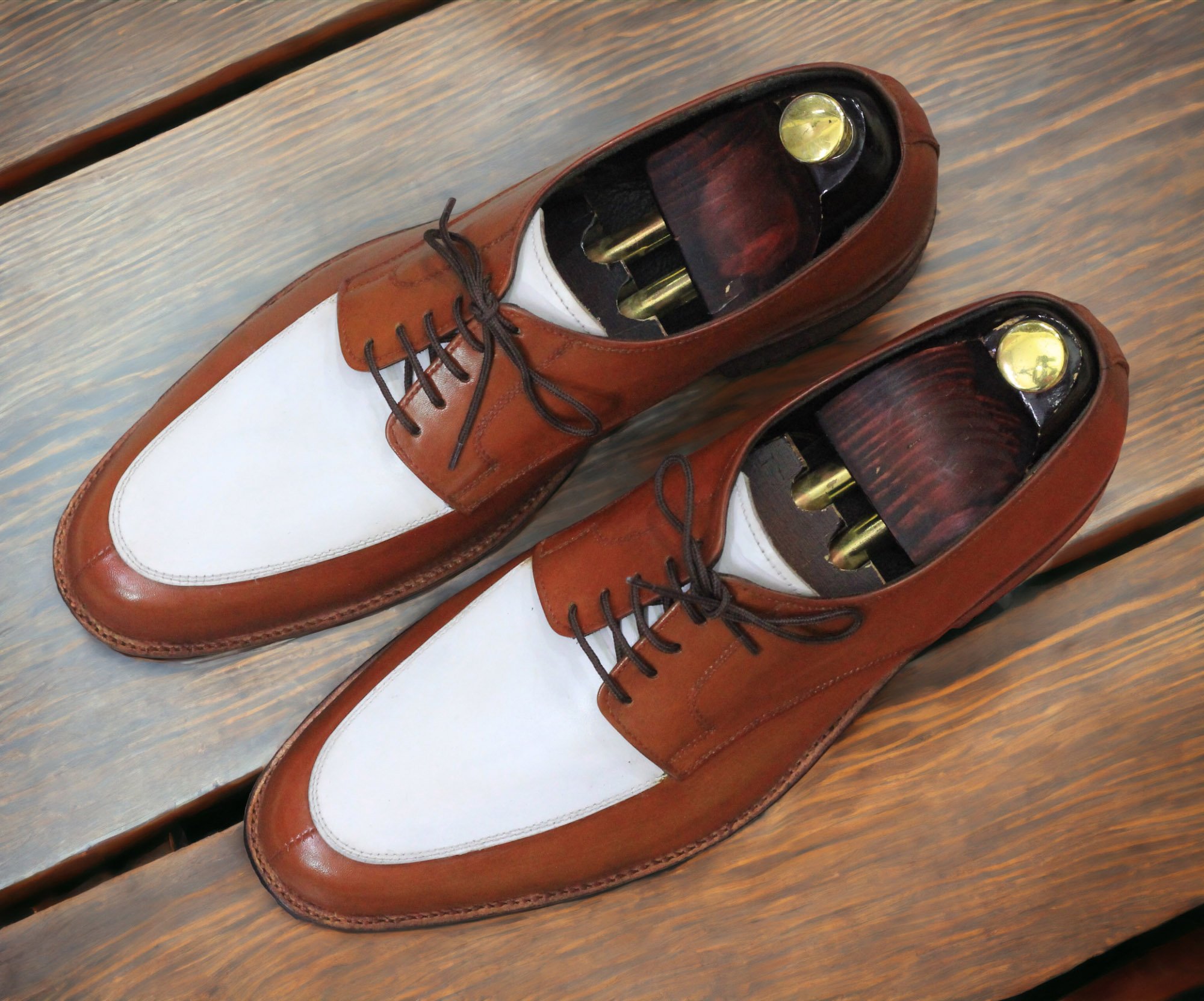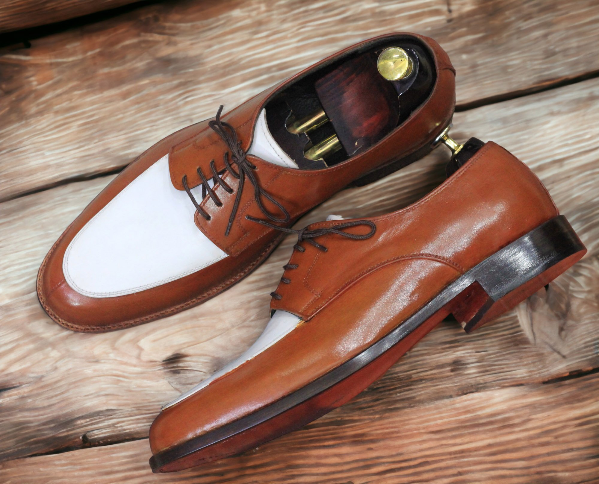 Men's Pure Brown White Lace Up Leather Shoes , Men's Dress Shoes
