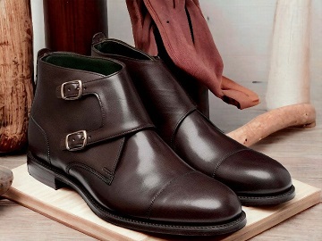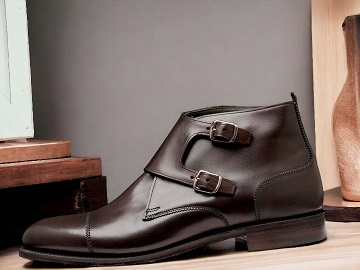 Bespoke Men's Chocolate Brown Ankle High Double Buckle Cap Toe Boot, Fashion Boot