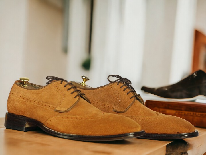 Handpainted Men's Brown Suede Laceup Wing tip Dress Shoes