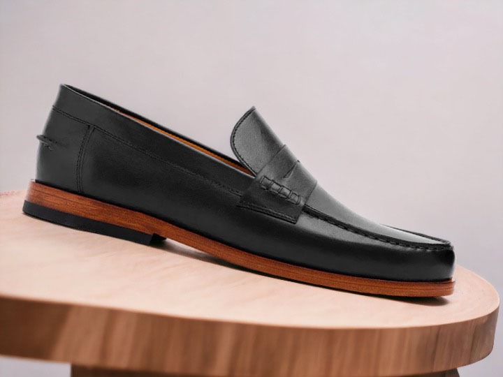 Handmade Men's Black Leather Penny Slip on Loafer Shoes