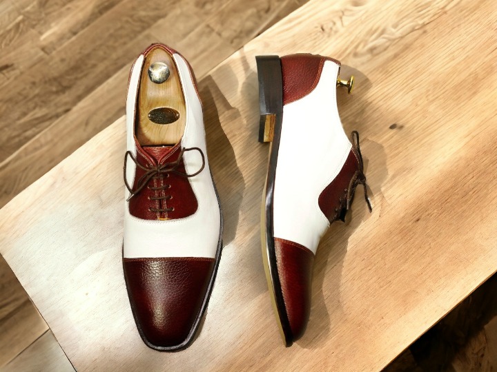 Handmade Men's Two tone Leather Laceup CapToe Shoes