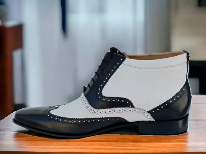 Handmade Men's Two tone Leather Lace up Wing tip Dress Boot