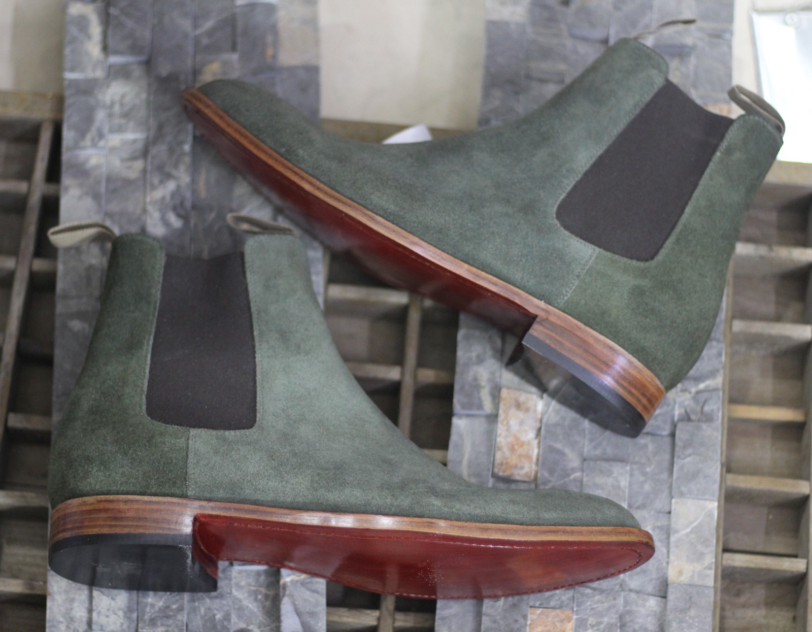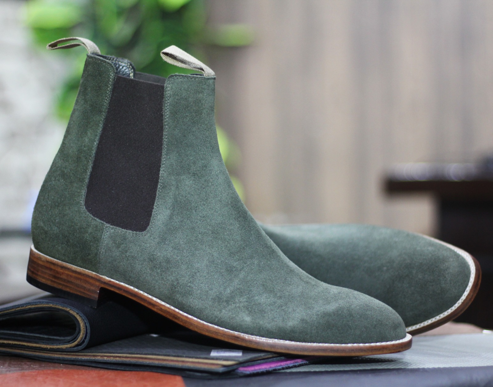 Handmade Men's Olive Suede Chelsea Ankle High Designer Boots