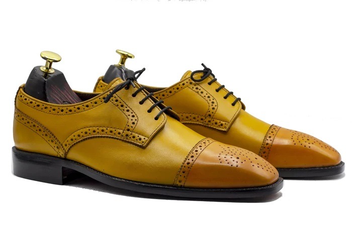 Handmade Men's Brown Leather Lace Up Cap Toe Fashion Dress Shoes