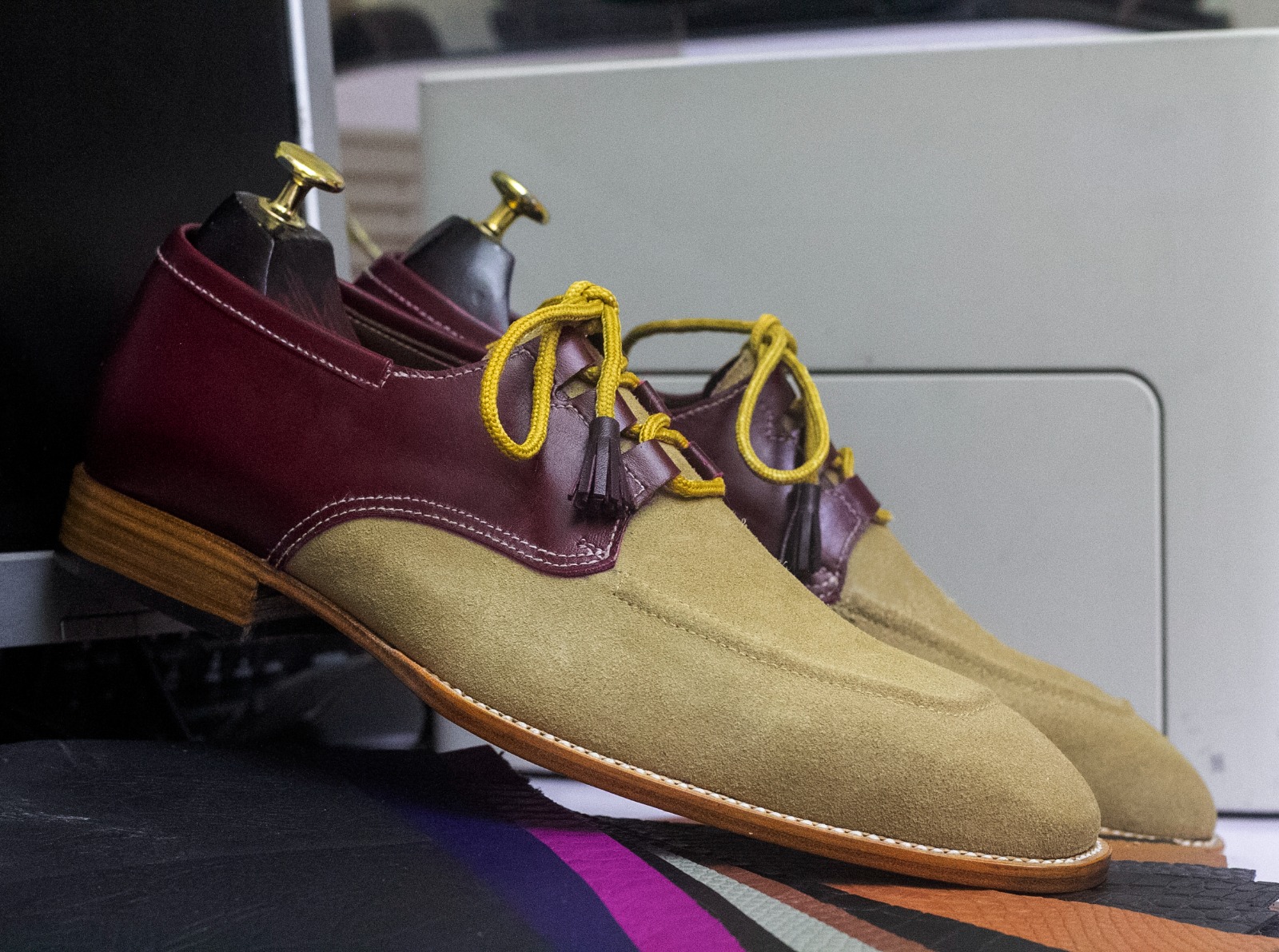 Men's Fashion Two Tone Leather & Suede Handmade Lace Up Office Shoes