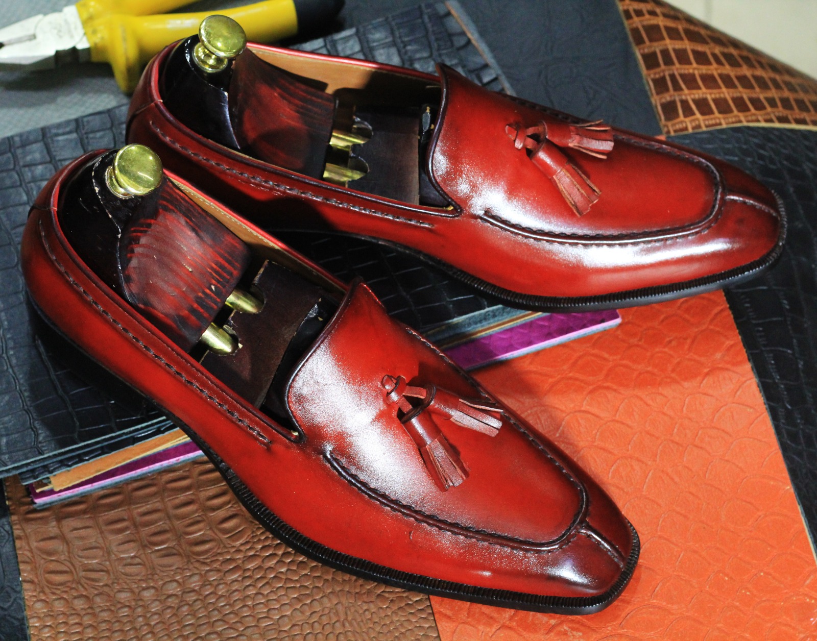 Men's Fashion Burgundy Leather Tussle Split Toe Handmade Loafer Shoes