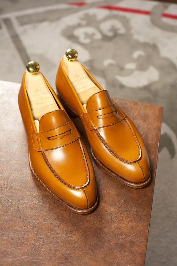 Handmade Brown Fashion Leather Penny Loafer Men's Shoes