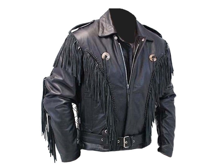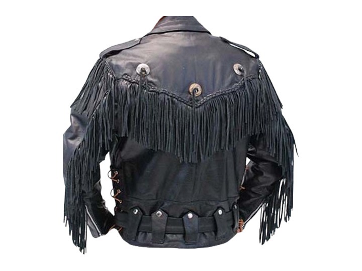 Handmade Men's Black Wasterns Stylish Fringe Zipper Leather Jacket