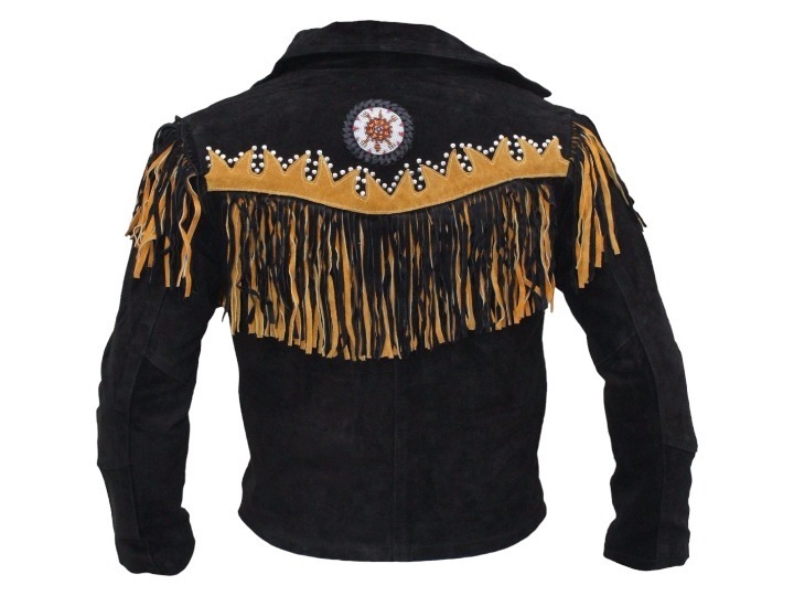 Handmade Men's Black Color Cowboy Suede Tan with Fringes Jacket