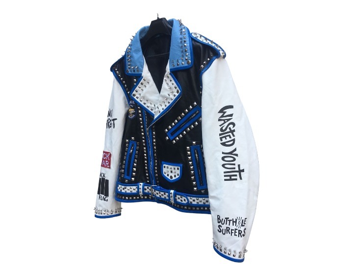 Handmade Men's Fashion Blue White Silver Studded Leather Jacket