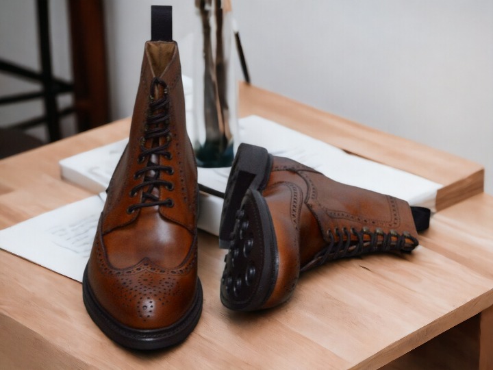 Handmade Men's Brown Genuine Leather Boot, Wing Tip Lace Up Boot