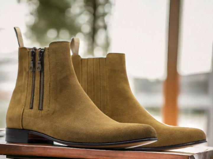 Tan Suede Boot ,Ankle High Side Double Zipper Boot, Handmade Men's
