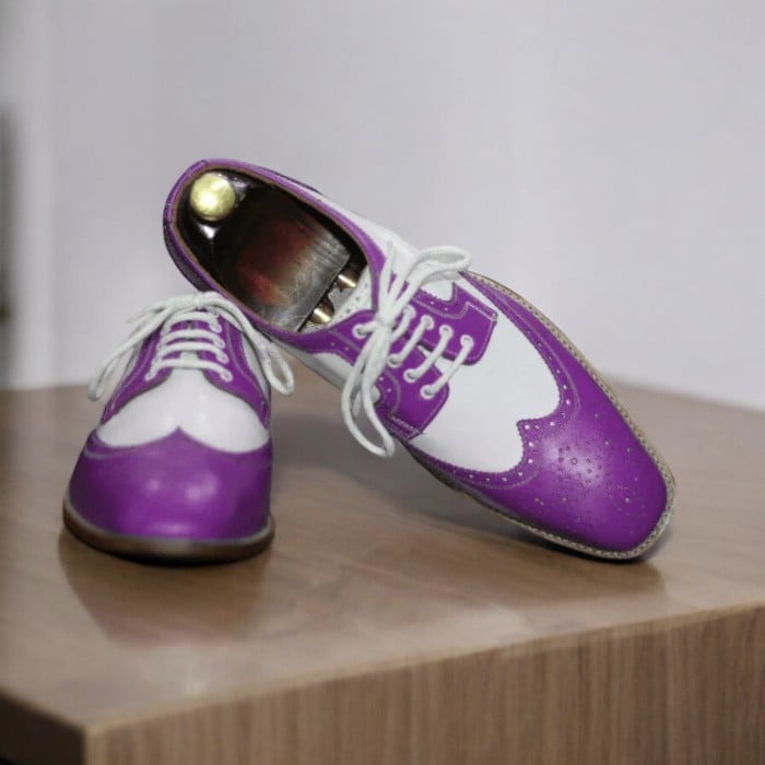 Men's Blue and White Leather Derby Lace-Up Designer Dress Shoes,