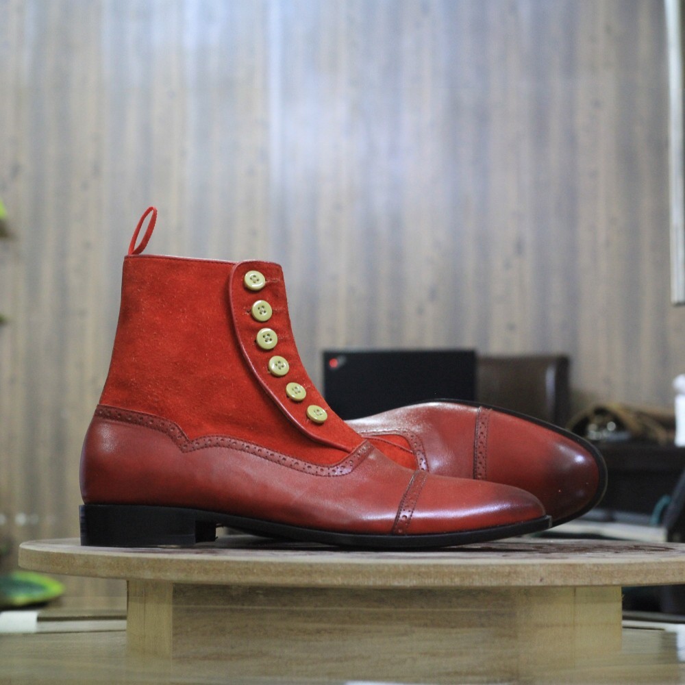 Ankle High Handmade Leather Suede Button Top Boot For Men's