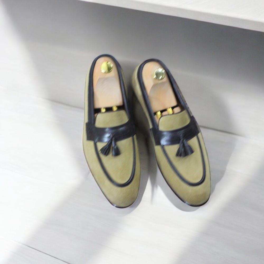 Handmade Men's Beige Leather Suede Moccasin Shoes